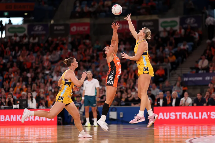 The GIANTS surged back into the contest, scoring four of the next five goals to close the gap and force a timeout from Lightning coach Belinda Reynolds, who challenged her side’s finishing with their centre-pass-to-goal rate sitting at 61%.