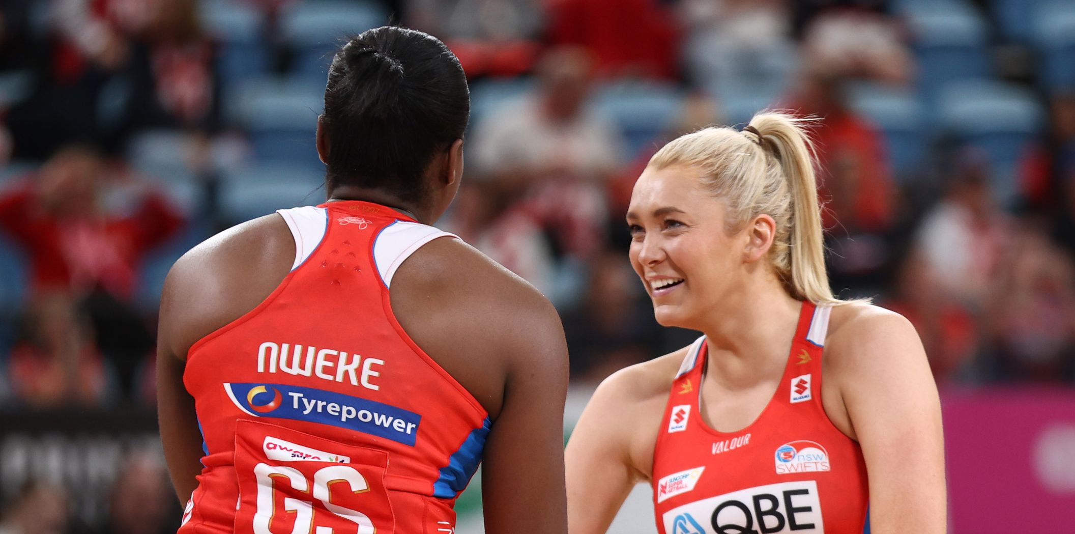 The GIANTS absolutely rocked the Swifts in the opening 15 minutes of the NSW Derby on Sunday, led by their future leaders in Erin O’Brien (two gains, two deflections) and Sophie Dwyer (seven centre pass receives, five goals) to stun a packed-out Ken Rosewall Arena,