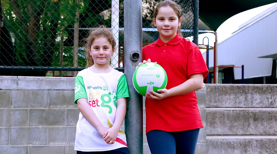 Sofia, 10, and her sister Lucy, 7, both take part in Woolworths NetSetGO with coaches from the Northern Football Netball League (NFNL).